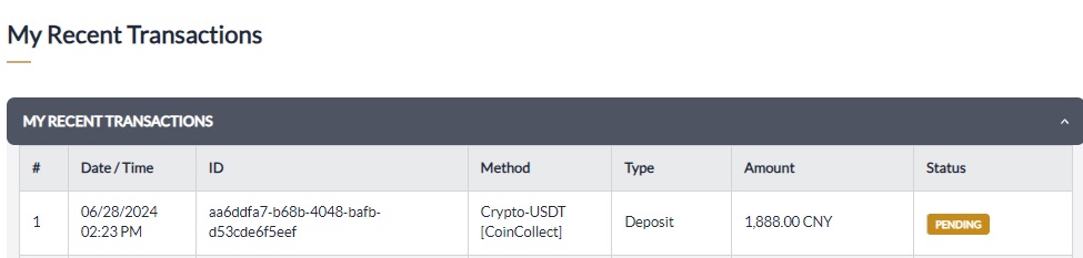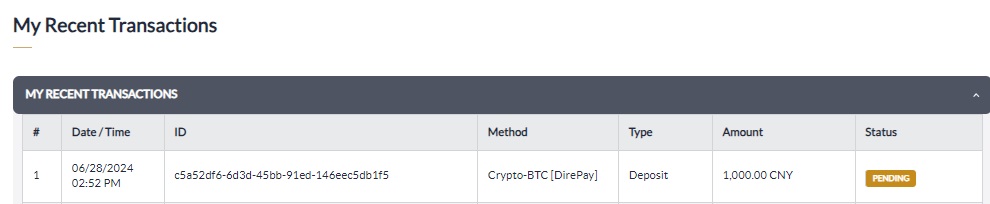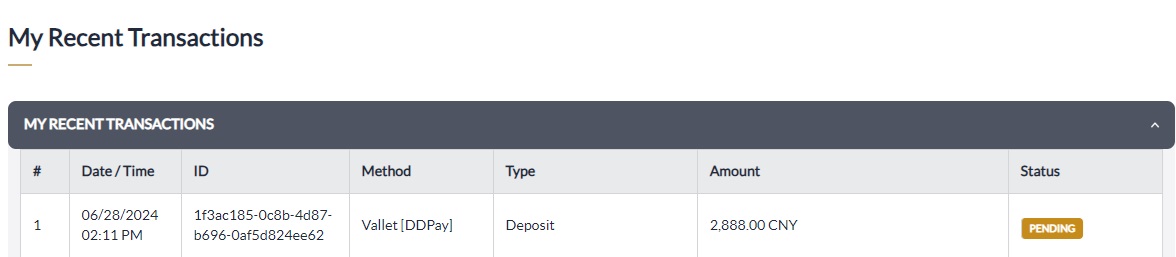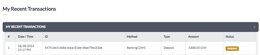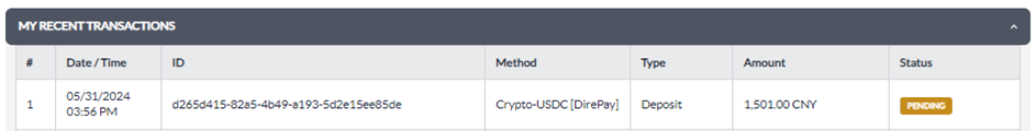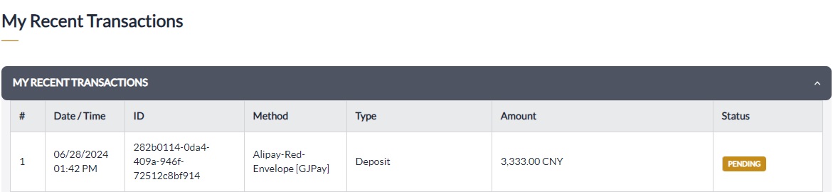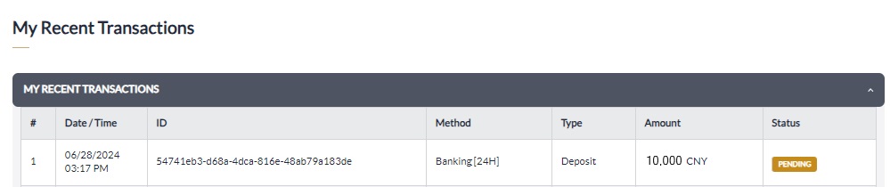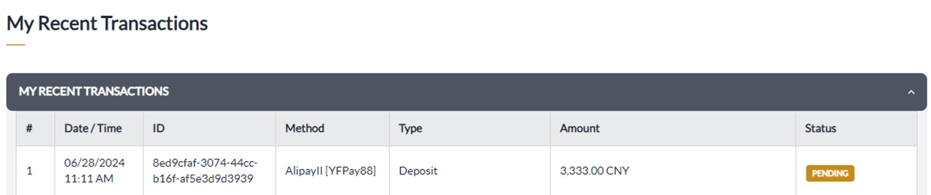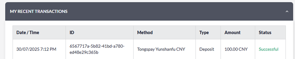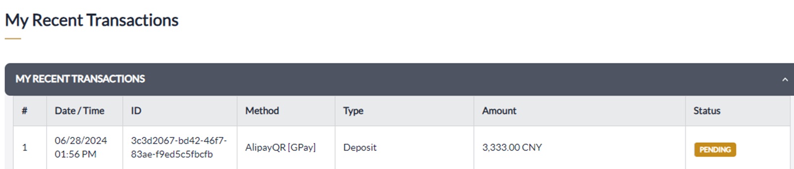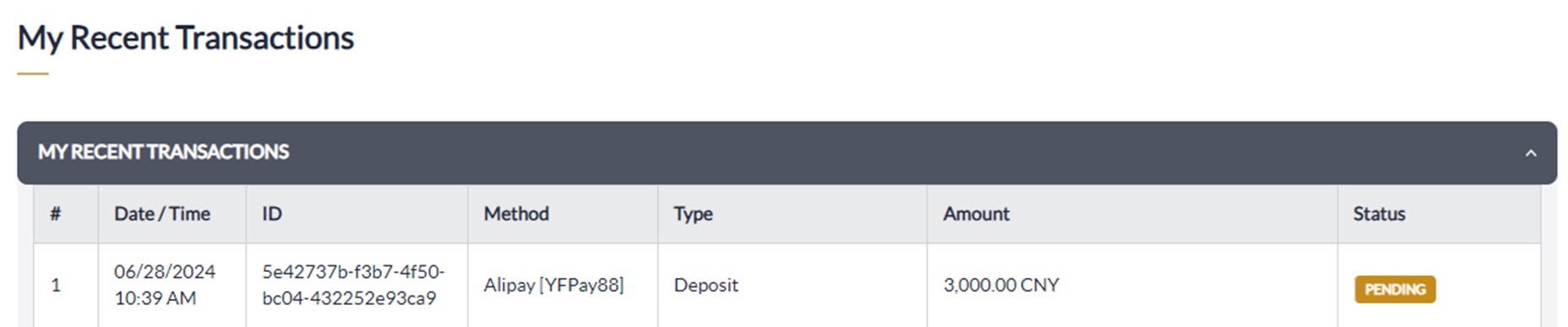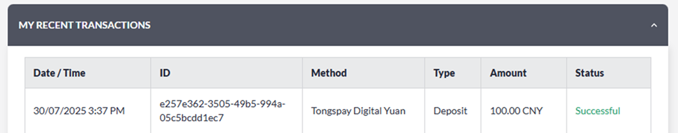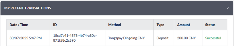 6. Kindly check deposit status in 【My Recent Transactions】.