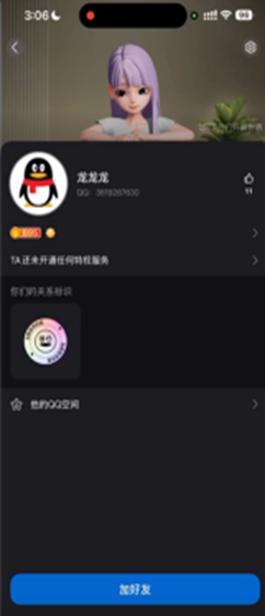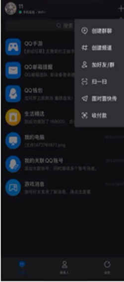 9. Open the QQ software, click the plus sign in the upper right corner, open the scan function, scan the QR code just now, and add the recipient friend