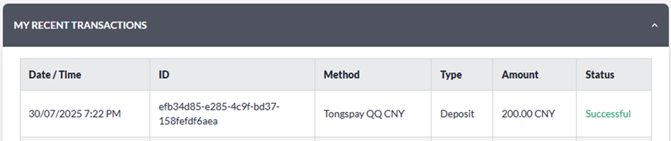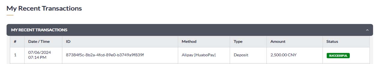 5. Kindly check deposit status in 【My Recent Transactions】.