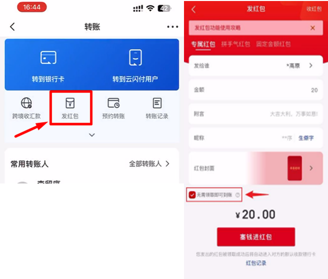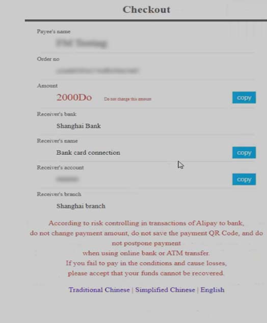 10. amount of payment must same with requested, please remember to tick the[无需领取即可到账] so the fund will auto credit to user account