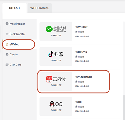 1. Select deposit method "Mobile Deposit" and choose "YFPay88"