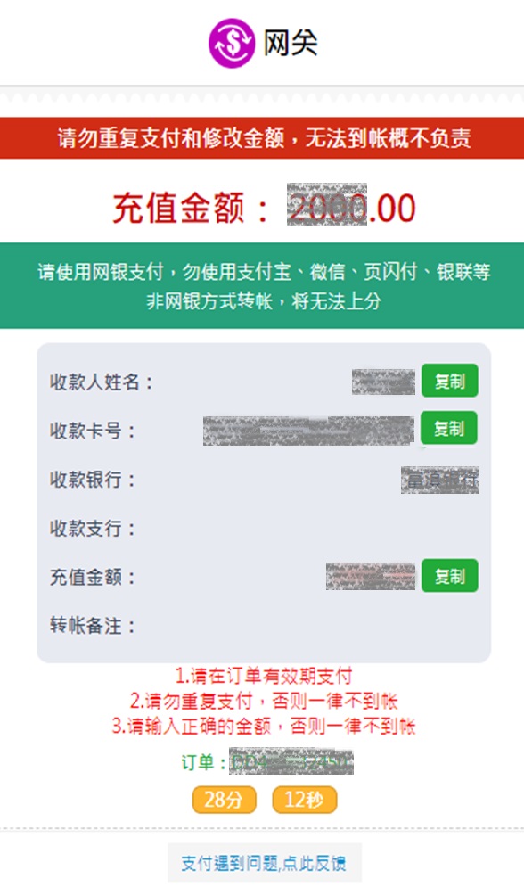 Note: Please transfer according to the "Transfer Amount" specified on this page to avoid transaction failure. After the transfer is successful, the amount will be transfer to your wallet according to the amount of your original submitted, and no fees will be deducted.