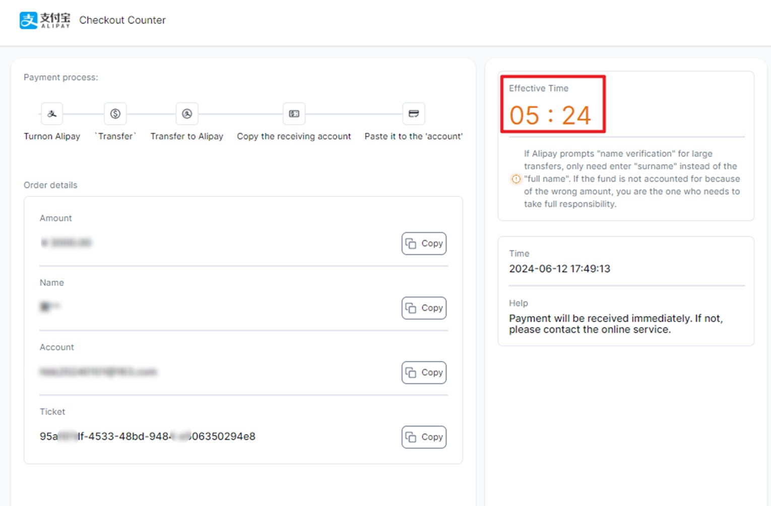 5. Follow on-screen instructions, complete within time limit, click【我已转账】