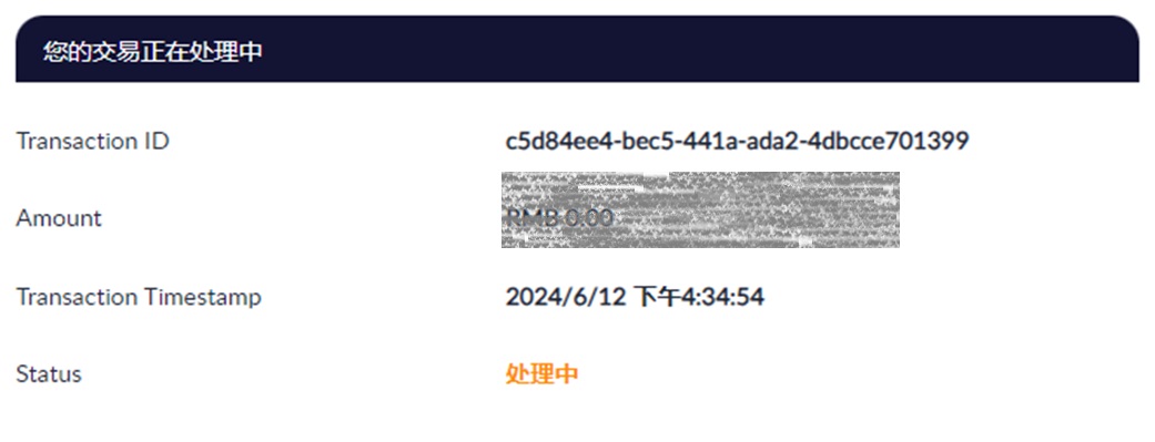 5. Follow on-screen instructions, complete within time limit and click 【付款完成】