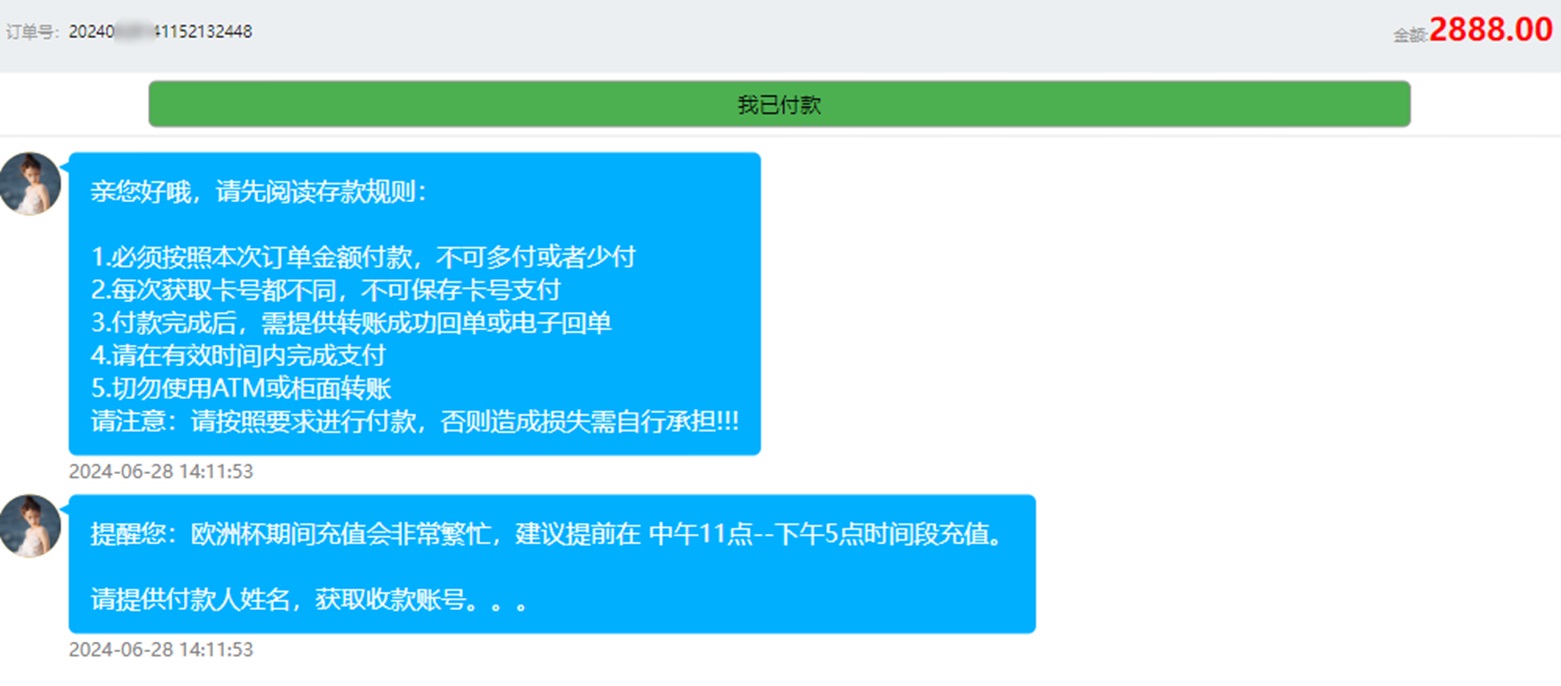 10. After verification, provide the order number information, the payee provides the corresponding payment method, and the member can pay as required After done the payment, check transaction in my recent transaction
