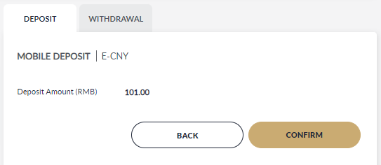 3. Click Confirm to be redirected to crypto transaction page or click Back to change your deposit amount (Make sure to enable pop – up window) Note: The exchange rate stated is indicative. The actual rate and amount credited can only be determined after submission of the transaction.