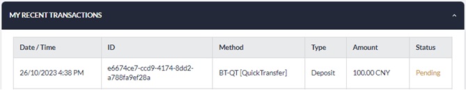 7. Your transaction status will be display on MY RECENT TRANSACTIONS