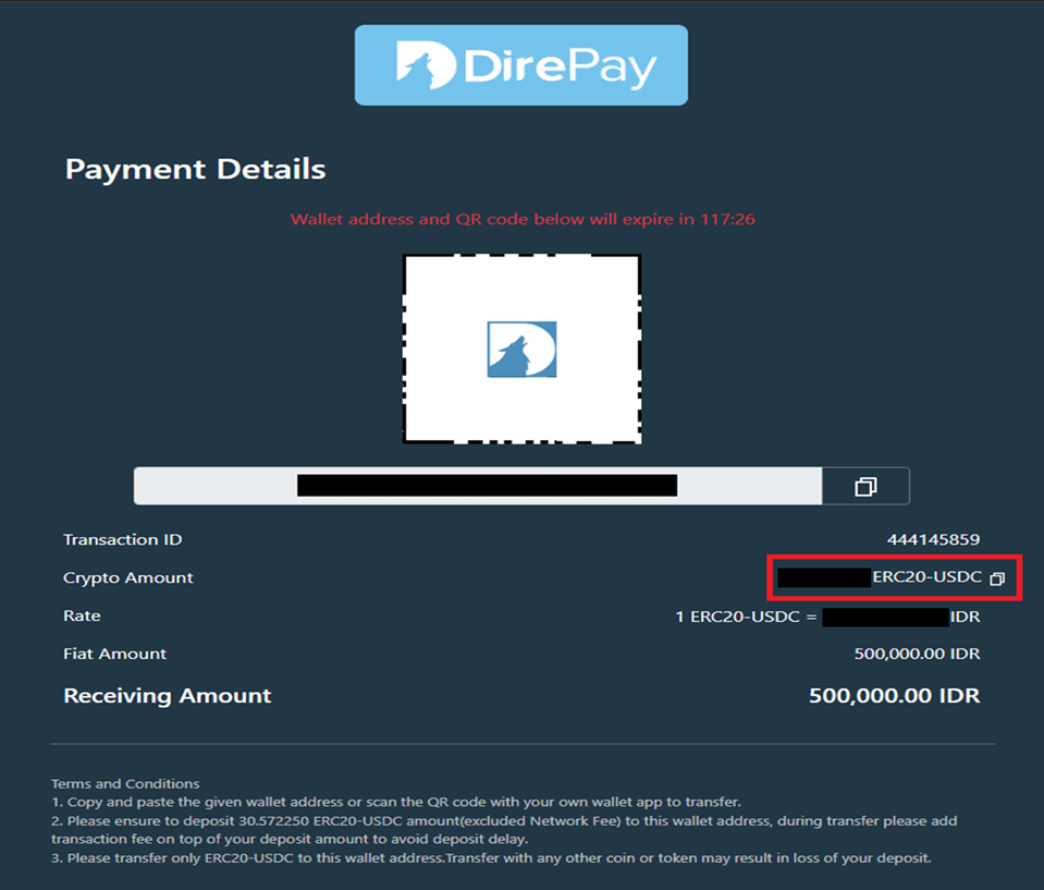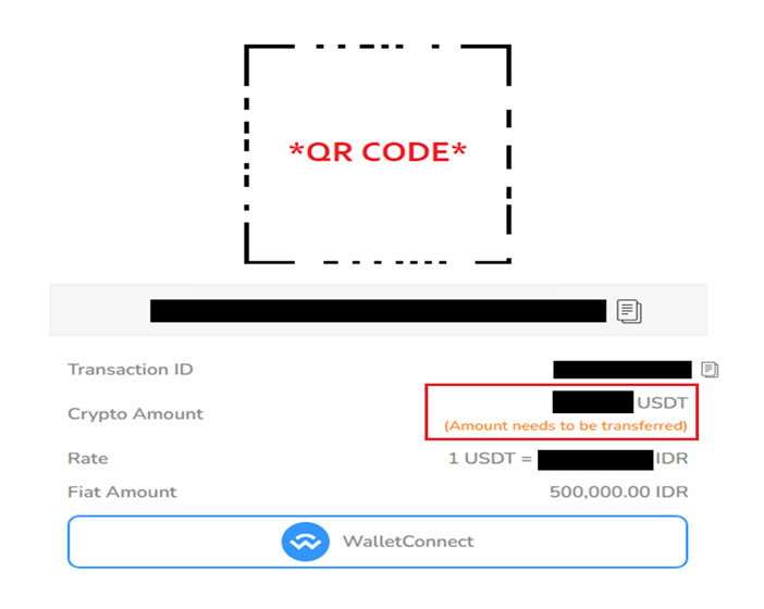- You will be redirected to Crypto currency page. This page will show you the Address and Crypto amount (USDT ERC20) that you need to transfer excluding transaction fee (gas fee or miners fee).
