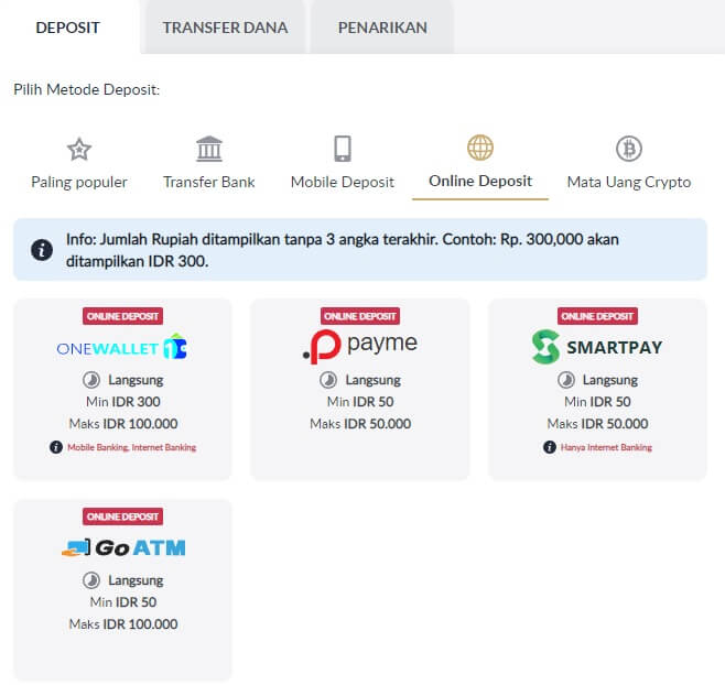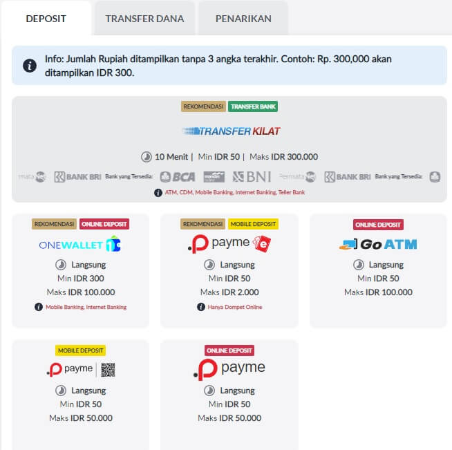 - Deposit transaction has been successful. Please keep your Transaction ID (Nomor transaksi) for reference