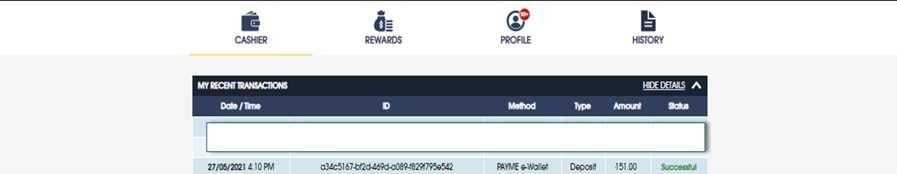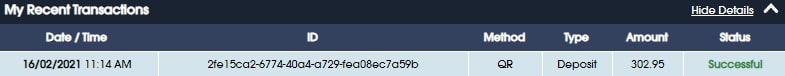 - Find your latest deposit record in "MY RECENT TRANSACTIONS" once your deposit has been credited successfully.
