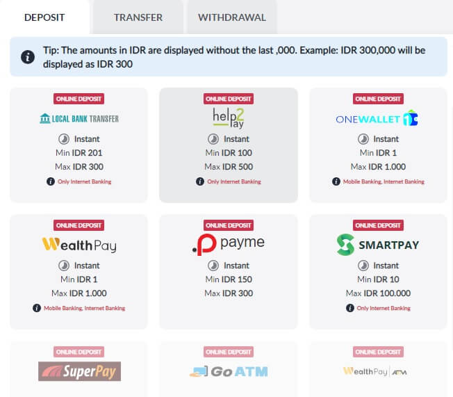 - Click "DEPOSIT" tab → Click "BANK TRANSFER" → Click "SUPERPAY".