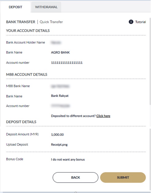 Deposit tutorial to find M88 bank account and guideline to make deposit confirmation