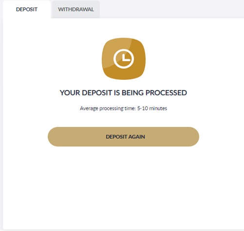 6. Deposit will be processed within 5 – 10 minutes estimation time
