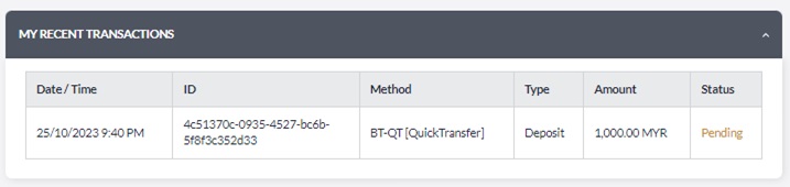 7. Your transaction status will be display on MY RECENT TRANSACTIONS