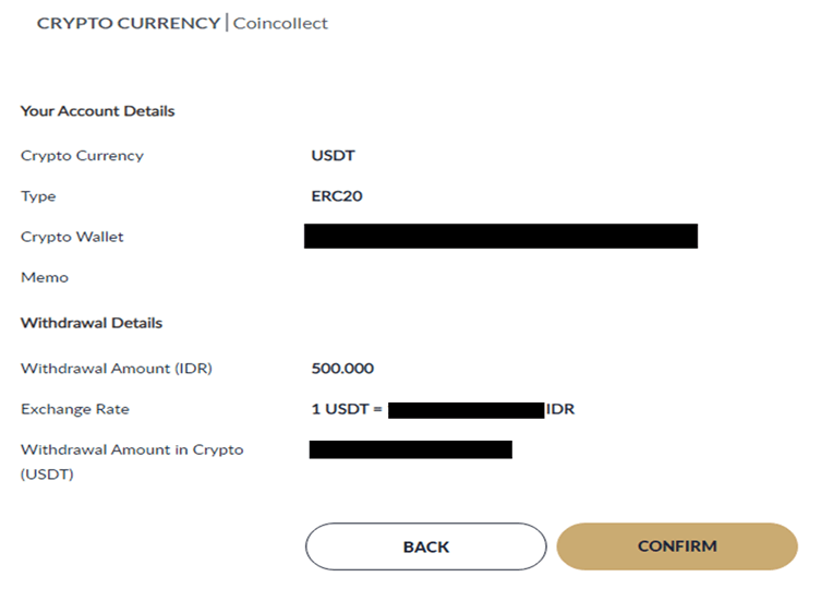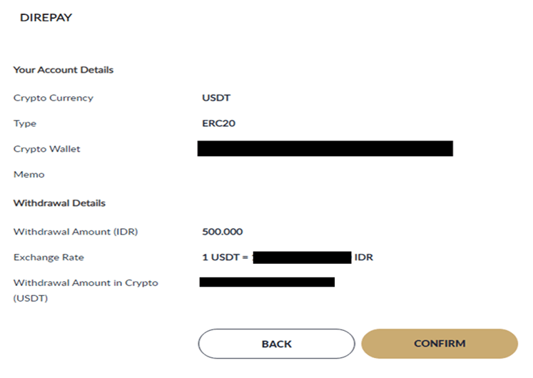 - Once all details are confirmed, click CONIFIRM to proceed with the withdrawal